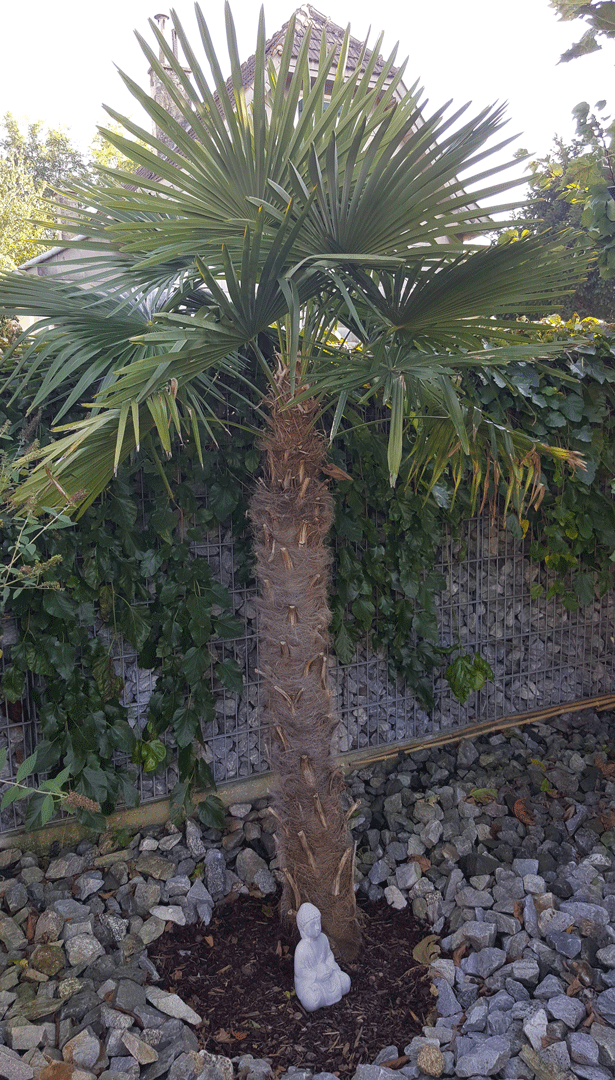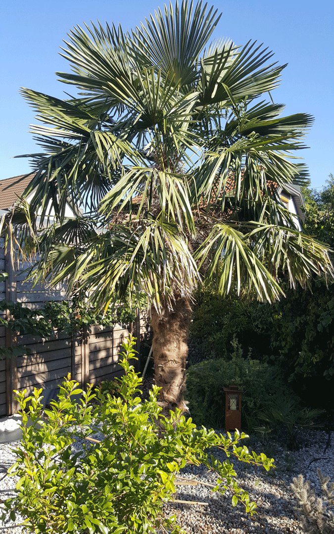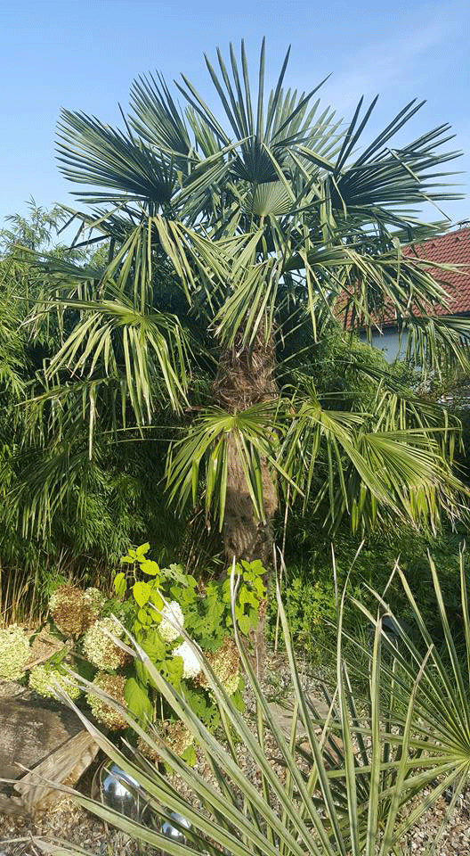 Mit dieser Palme sind wir quasi 2006 in dieses Hobby eingestiegen. Ihre gute Frostverträglichkeit macht sie nicht umsonst zur wahrscheinlich meistgepflanzten Palme in unseren Gärten. Es gilt allerdings zu beachten, dass die Pflanze vor allem in den ersten Jahren bei zu niedrigen Temperaturen einen Winterschutz bekommt. Je nach Bodenbeschaffenheit muss auch für ausreichend Bewässerung gesorgt werden.
