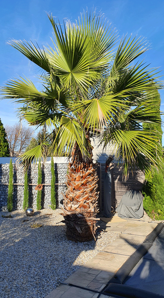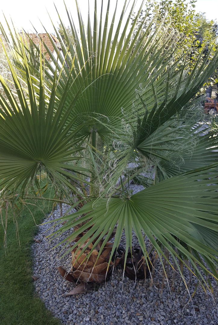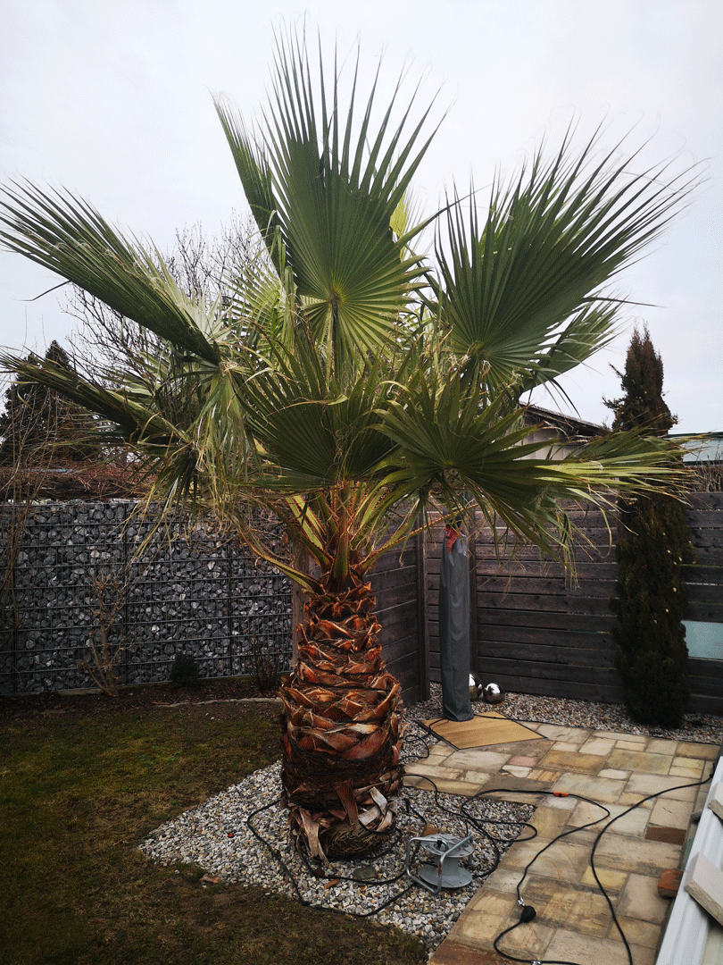 Wir haben unsere erste Washingtonia im Frühjahr 2014 ausgepflanzt. Zwei weitere Exemplare sind im Februar 2017 noch dazu gekommen. Diese Palmen wachsen, wenn sie ausgepflanzt sind, eher schnell und bilden imposante Blätter - kein Vergleich zu den Topfpflanzen. Sie benötigen in der ersten zeit relativ viel Wasser, bis ihre Wurzeln das Grundwasser erreicht haben.
