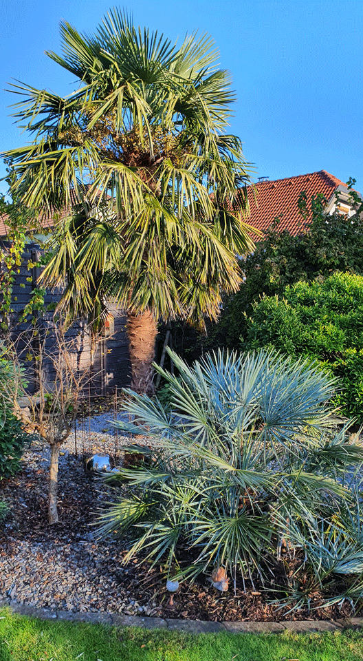 Mit dieser Palme sind wir quasi 2006 in dieses Hobby eingestiegen. Ihre gute Frostverträglichkeit macht sie nicht umsonst zur wahrscheinlich meistgepflanzten Palme in unseren Gärten. Es gilt allerdings zu beachten, dass die Pflanze vor allem in den ersten Jahren bei zu niedrigen Temperaturen einen Winterschutz bekommt. Je nach Bodenbeschaffenheit muss auch für ausreichend Bewässerung gesorgt werden.