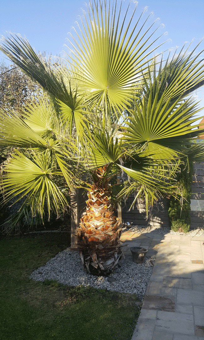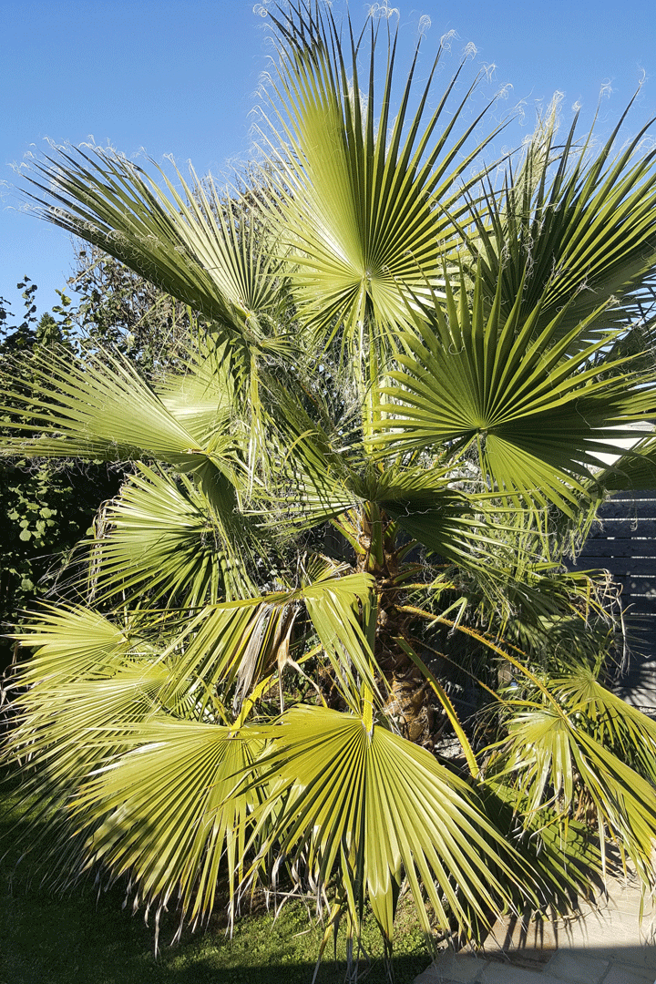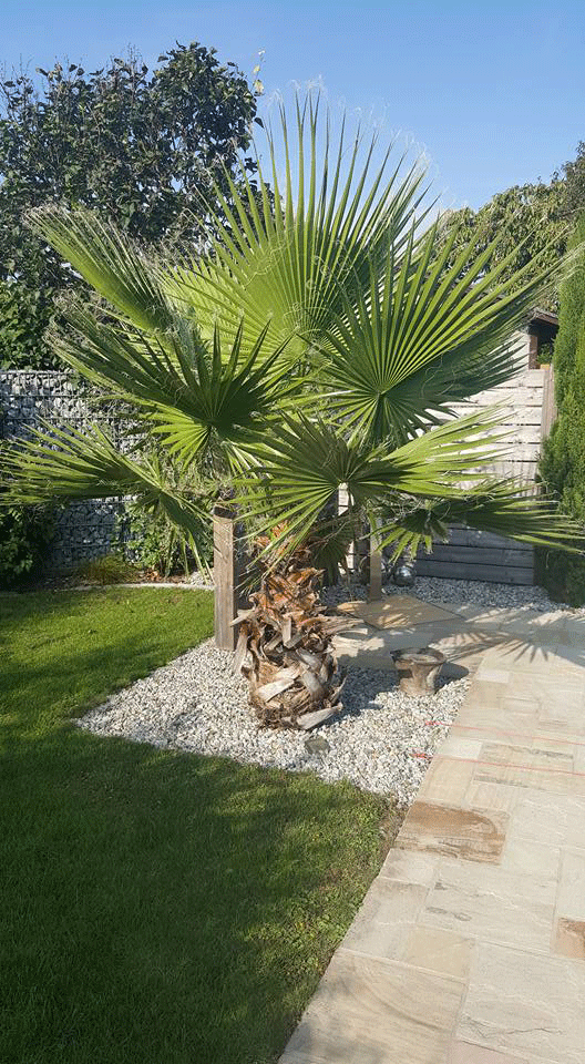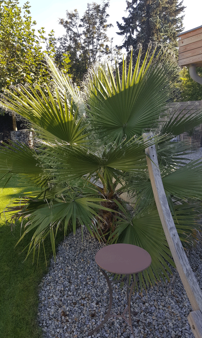Wir haben unsere erste Washingtonia im Frühjahr 2014 ausgepflanzt. Zwei weitere Exemplare sind im Februar 2017 noch dazu gekommen. Diese Palmen wachsen, wenn sie ausgepflanzt sind, eher schnell und bilden imposante Blätter - kein Vergleich zu den Topfpflanzen. Sie benötigen in der ersten zeit relativ viel Wasser, bis ihre Wurzeln das Grundwasser erreicht haben.